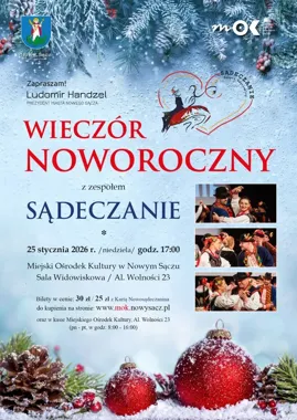 Miejski Ośrodek Kultury organizuje Wieczór Noworoczny z udziałem zespołu Sądeczanie. Wydarzenie odbędzie się 25 stycznia (niedziela) o godz. 17 w Sali Widowiskowej MOK, Al. Wolności 23.